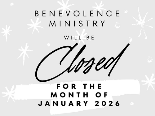 Please note: The Benevolence Ministry will be closed through the month of January! Request and will resume during the beginning of February.